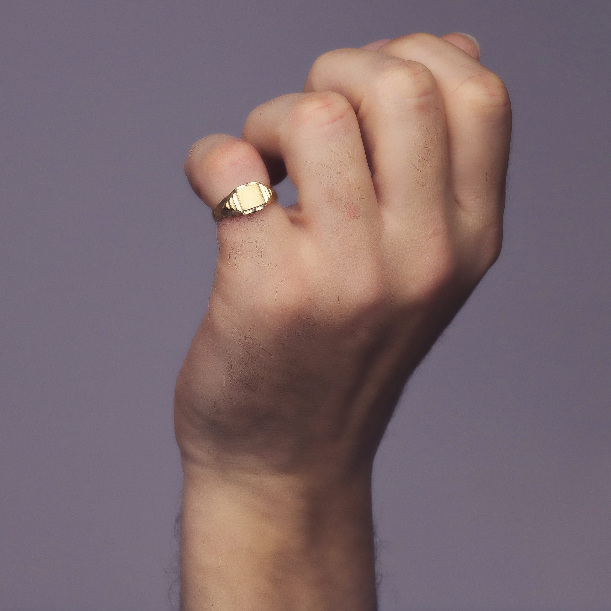 9K SELLO ORO AMARILLO MACIZO CADETE. CABEZA RECTANGULAR 8X7 MM