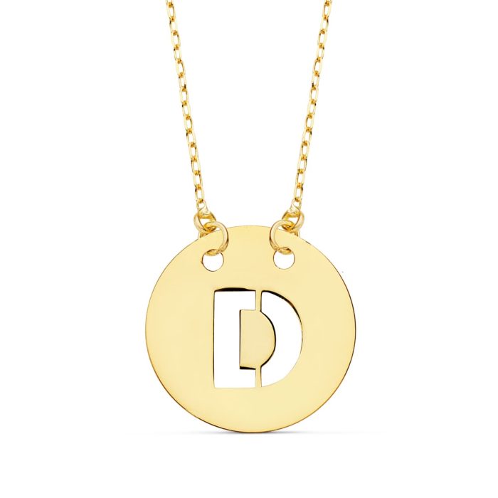 18K COLGANTE LETRA » D » 15 MM CADENA FORZADA 42 CM
