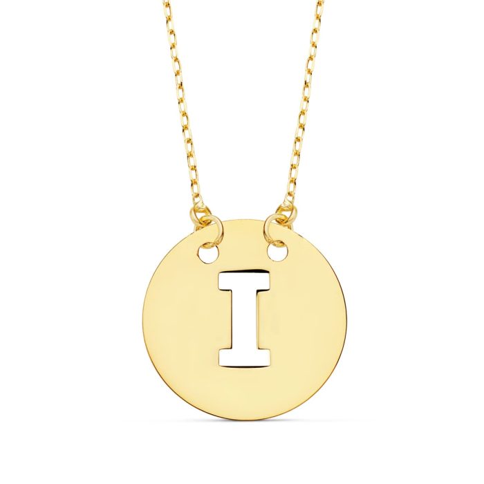 18K COLGANTE LETRA » I » 15 MM CADENA FORZADA 42 CM
