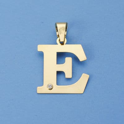 18K COLGANTE LETRA » E » CIRCONITA 23X20 MM