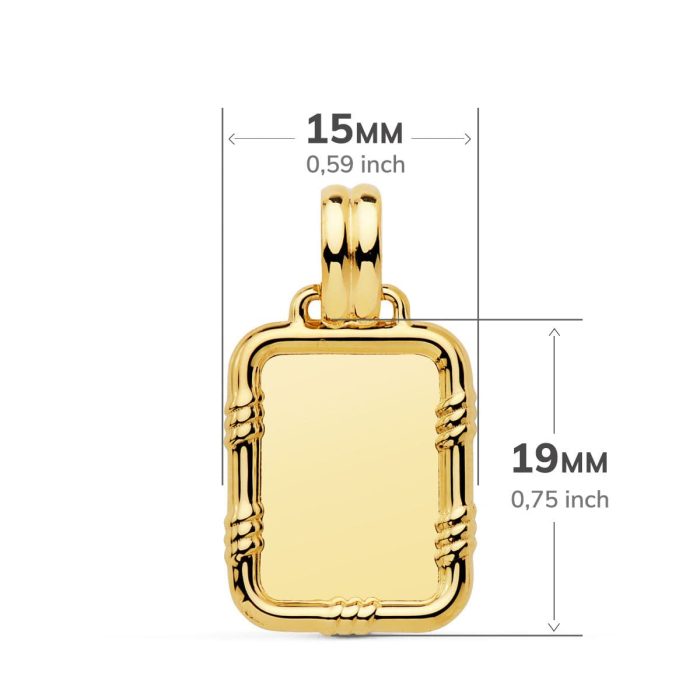 18K CHAPA BRILLO CON BORDE 19X15 MM
