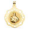 18K ESCAPULARIO VIRGEN DEL CARMEN Y CORAZON DE JESUS CALADO BRILLO 31 X 27 MM