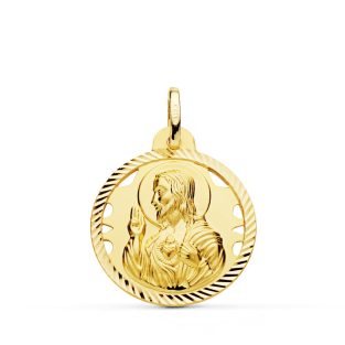 18K MEDALLA CRISTO SAGRADO CORAZON DE JESUS BISEL 16 MM