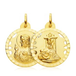18K ESCAPULARIO BISEL VIRGEN DEL CARMEN CORAZON DE JESUS 22 MM
