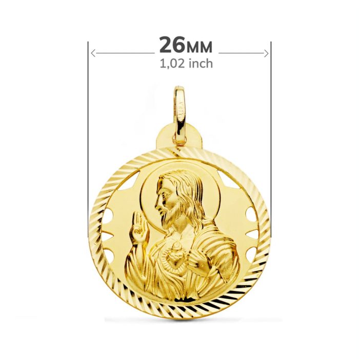 18K ESCAPULARIO HELICE CALADO VIRGEN CARMEN Y CORAZON DE JESUS 26 MM