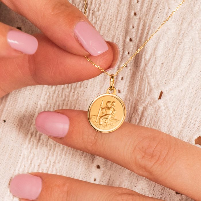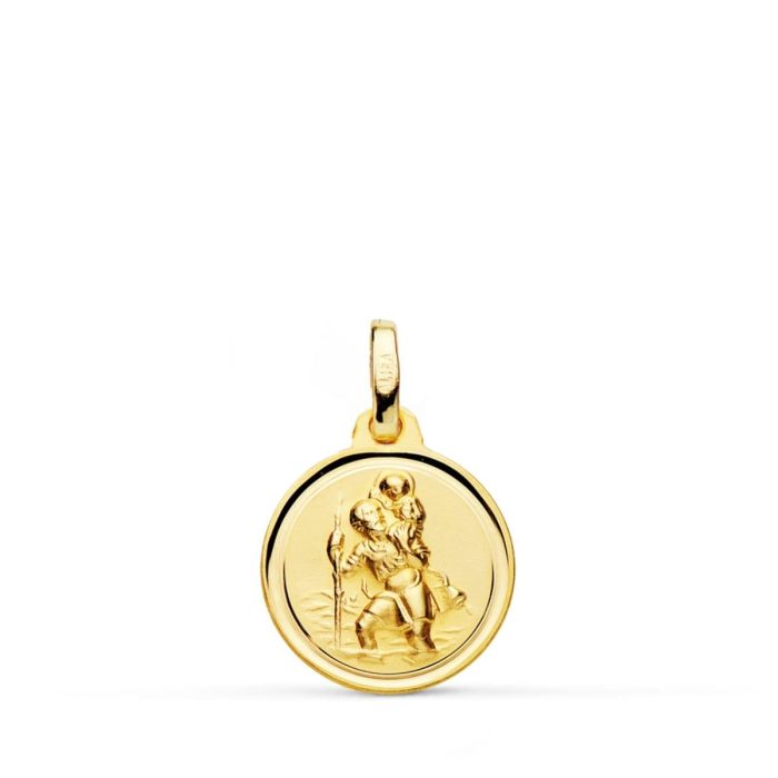 18K MEDALLA ORO AMARILLO SAN CRISTOBAL MATIZADO BISEL 14 MM