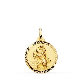 Celebra la espiritualidad con esta Medalla de Oro de Ley de 18 Kilates, donde la devoción se encuentra con el lujo. Cada detalle de 18K MEDALLA SAN CRISTOBAL BISEL 16 MM es una expresión de fe radiante. Fusionando la pureza del oro con la artesanía excepcional, esta medalla es más que una joya, es una conexión divina que lleva contigo la elegancia eterna. Además esta Medalla está fabricada por el prestigioso fabricante de joyería Pérez Mora de Córdoba, cuna de la joyería de Oro en España.
