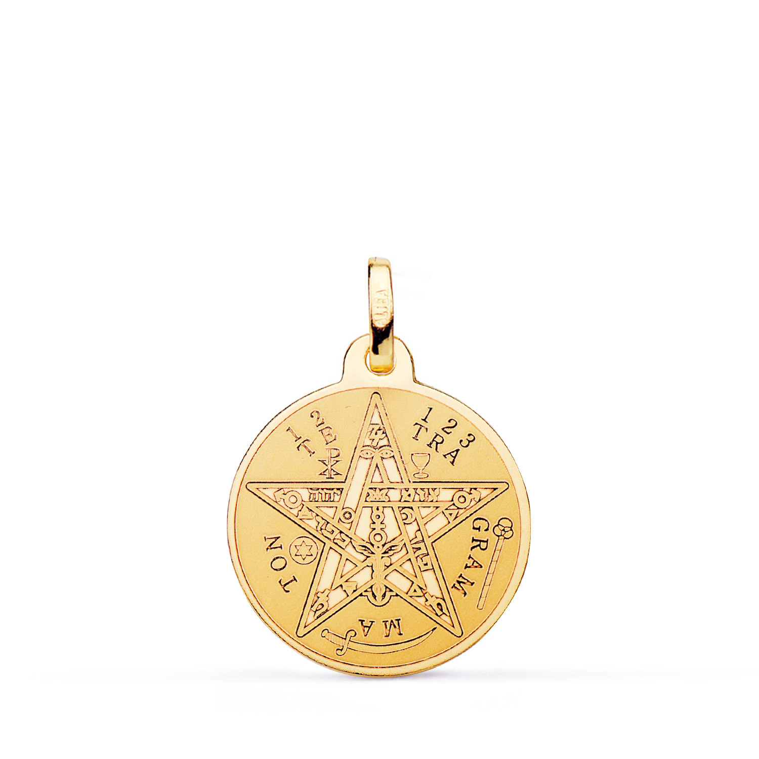 18K COLGANTE DISCO ORO AMARILLO MATIZADOY BRILLO TETRAGRAMATON 18 MM