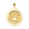 18K MEDALLA ORO AMARILLO CORONA CON BORDE DE GRECA CALADA. 27 MM