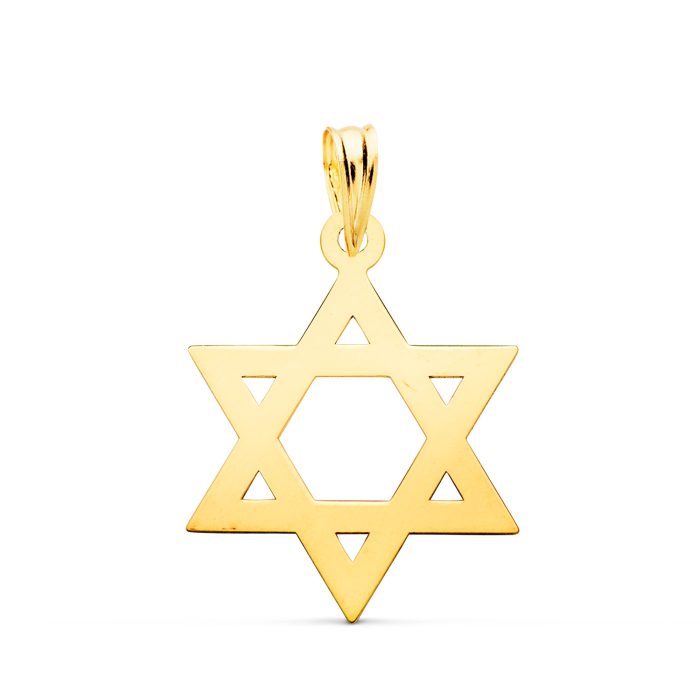 18K COLGANTE ORO AMARILLO ESTRELLA DE DAVID BRILLO 22 X 17 MM