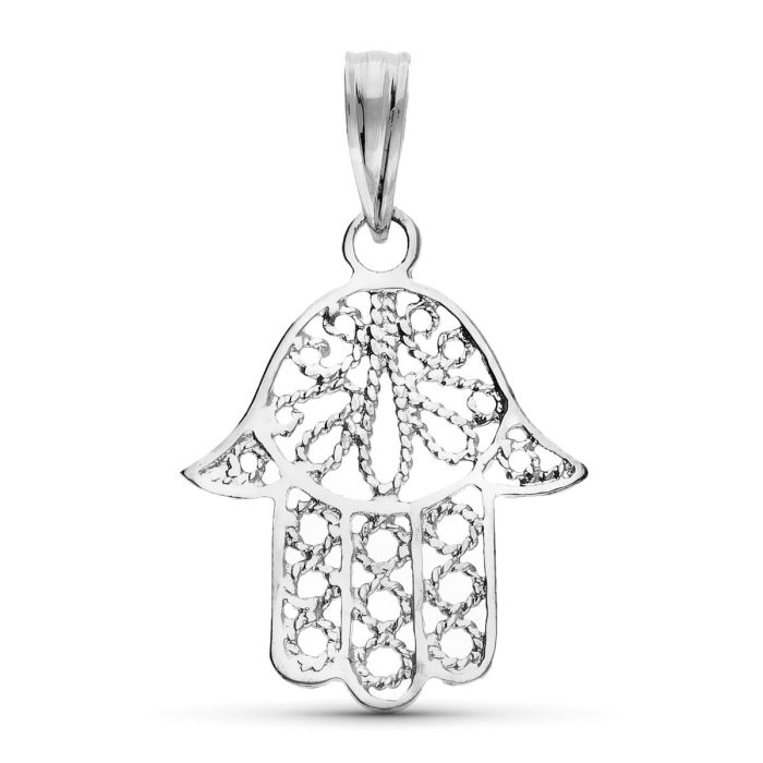 18K COLGANTE ORO BLANCO MANO DE FATIMA 19X15 MM