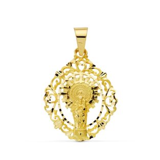 18K ESCAPULARIO VIRGEN PILAR Y CORAZON DE JESUS 18 MM