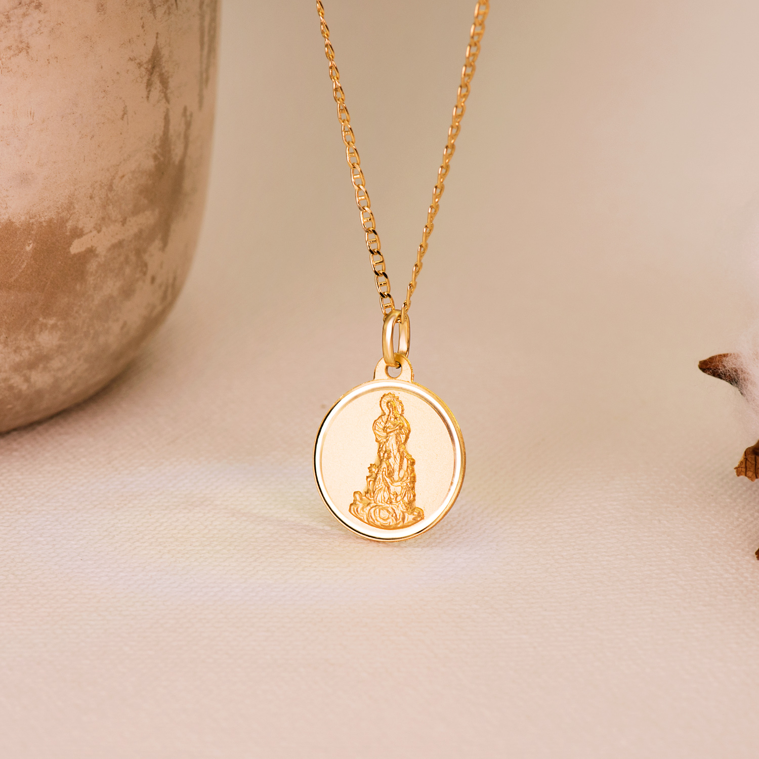 Celebra la espiritualidad con esta Medalla de Oro de Ley de 18 Kilates, donde la devoción se encuentra con el lujo. Cada detalle de 18K MEDALLA VIRGEN DEL SALIENTE 18 MM es una expresión de fe radiante. Fusionando la pureza del oro con la artesanía excepcional, esta medalla es más que una joya, es una conexión divina que lleva contigo la elegancia eterna. Además esta Medalla está fabricada por el prestigioso fabricante de joyería Pérez Mora de Córdoba, cuna de la joyería de Oro en España.