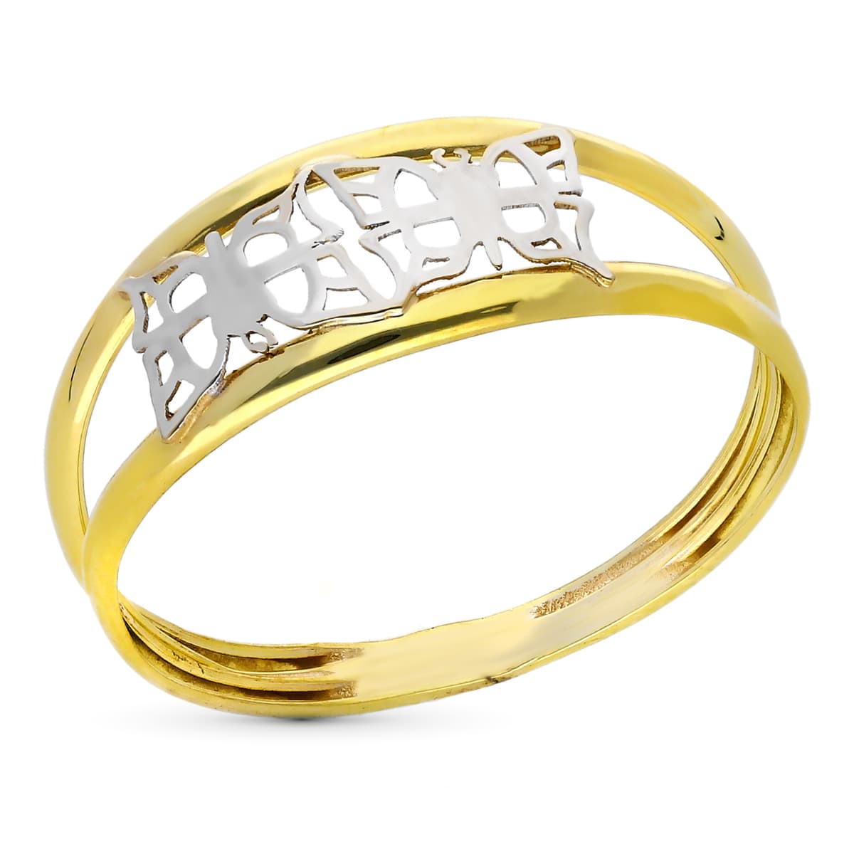 18K SORTIJA 2 HILOS ORO BICOLOR MARIPOSAS