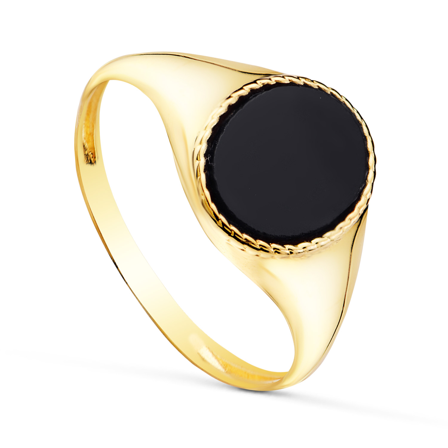 18K SELLO ORO AMARILLO BRILLO CON PIEDRA OVAL ONIX 10 X 8 MM .