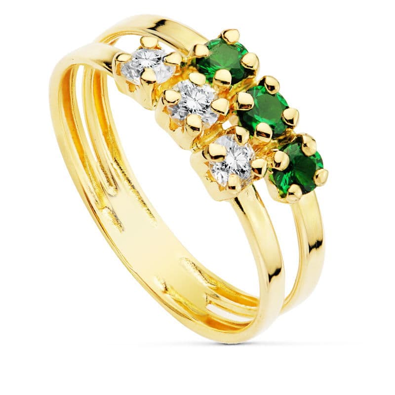 18K SORTIJA CIRCONITAS VERDES Y BLANCAS