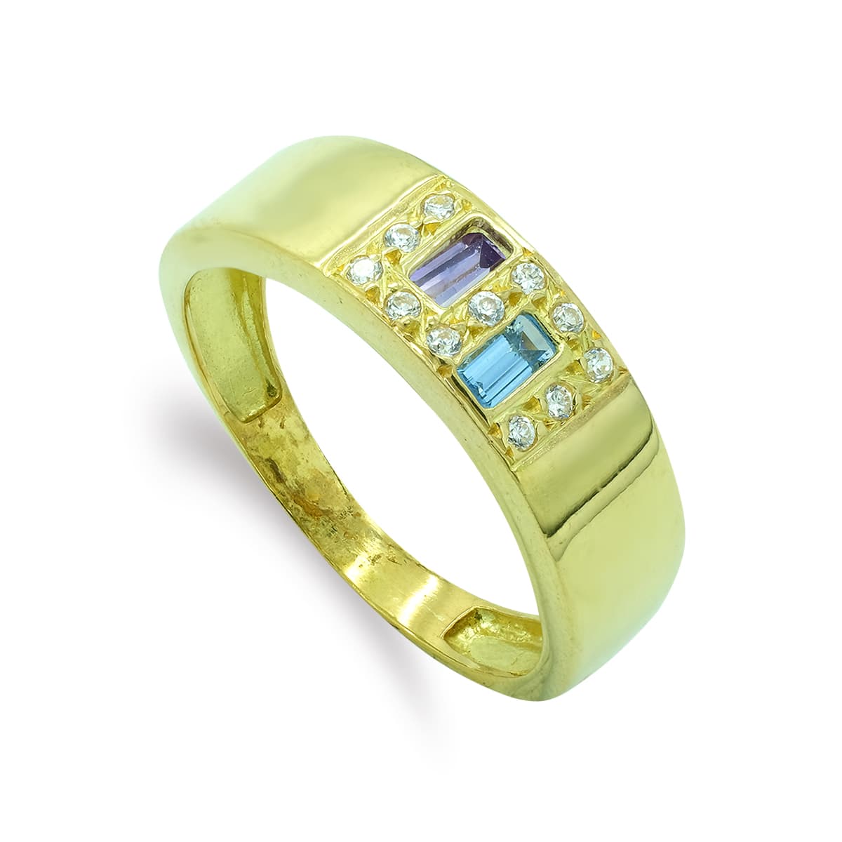 18K SORTIJA ORO AMARILLO RECTANGULAR CON CIRCONITAS
