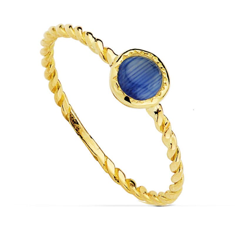 18K SORTIJA PIEDRA AZUL CABUJON 3.5 MM
