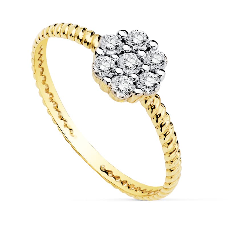18K SORTIJA BICOLOR CUAJO 6X6 MM CIRCONITAS