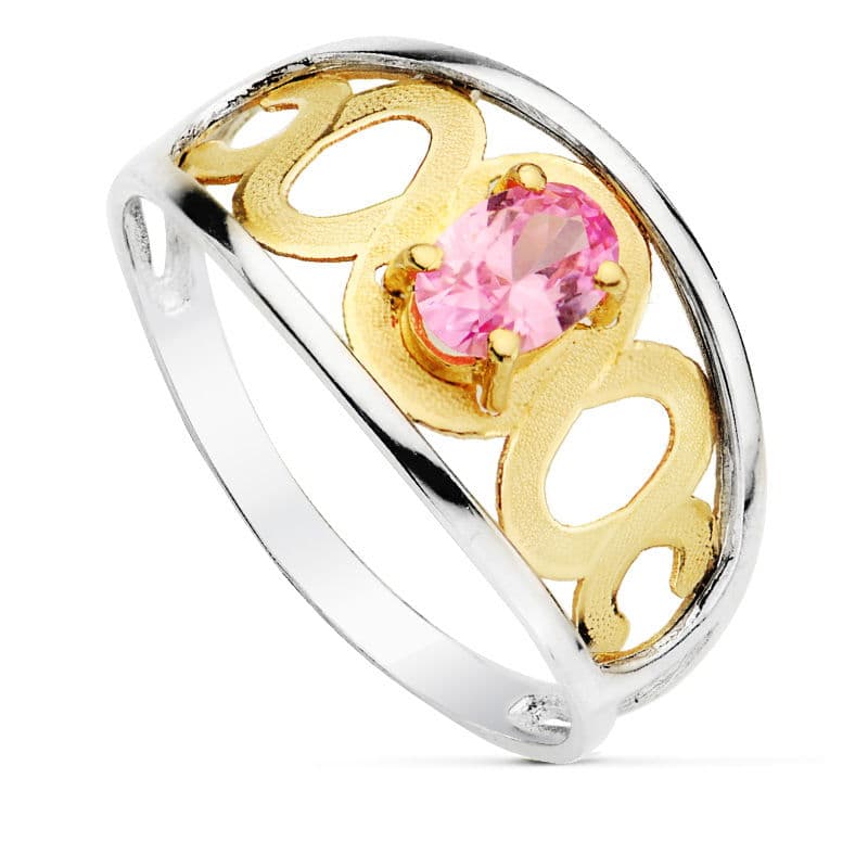 18K SORTIJA BICOLOR PIEDRA OVAL. 2.5 MM