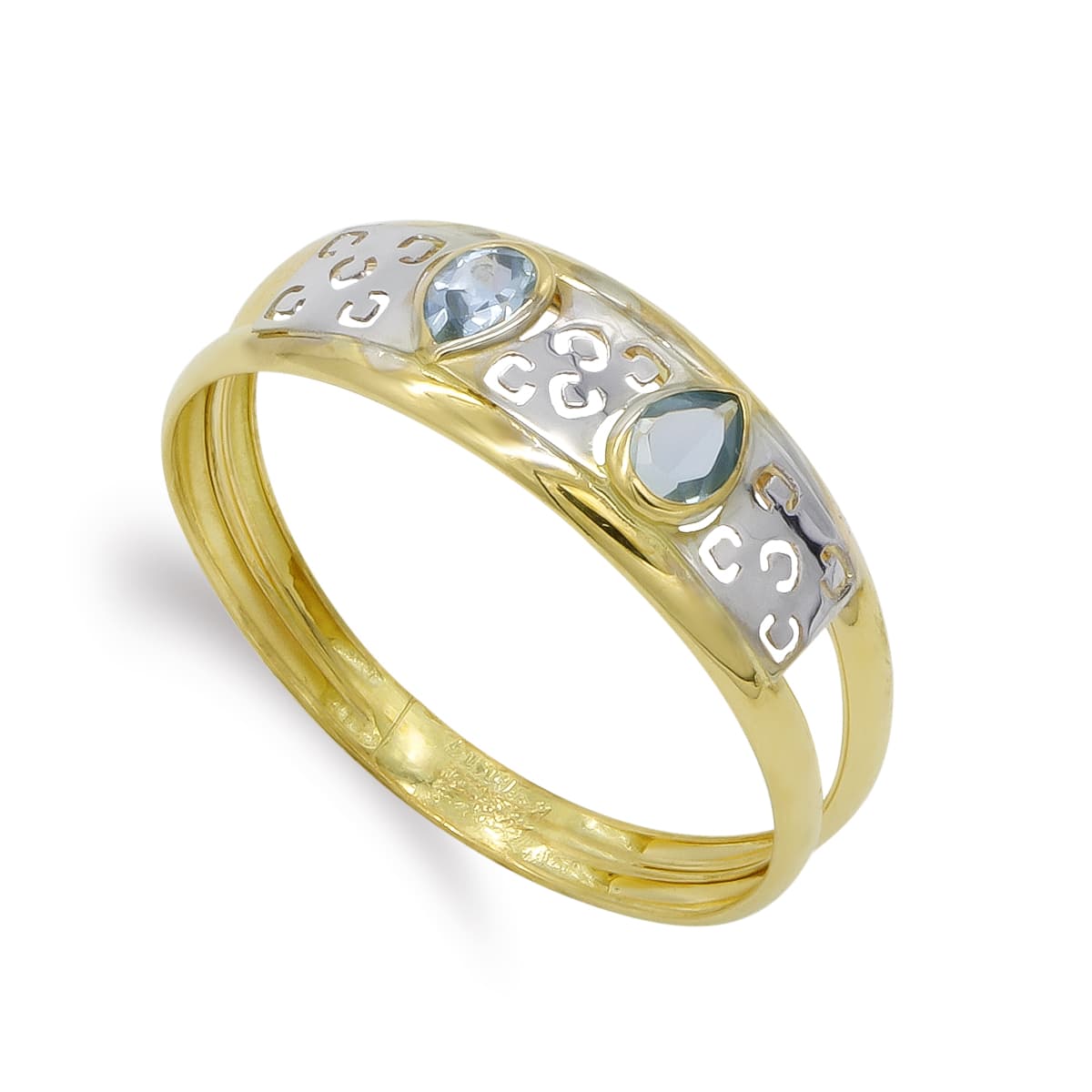18K SORTIJA BICOLOR PIEDRAS AGUAMARINA 4X3 MM