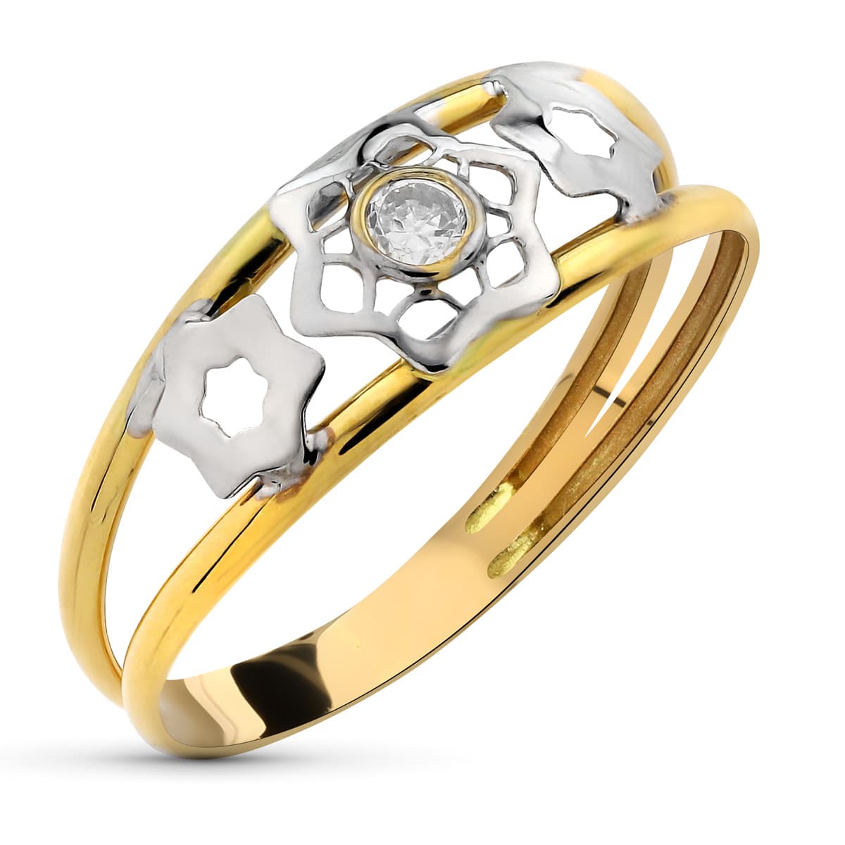 18K SORTIJA ORO BICOLOR HILOS CIRCONITAS