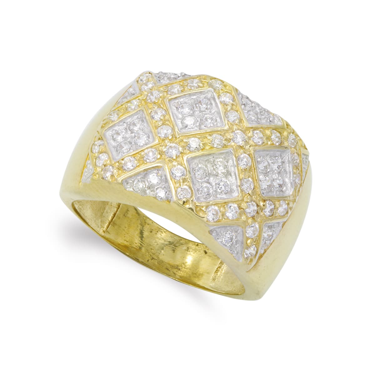 18K SORTIJA ORO BICOLOR ROMBOS CON CIRCONITAS