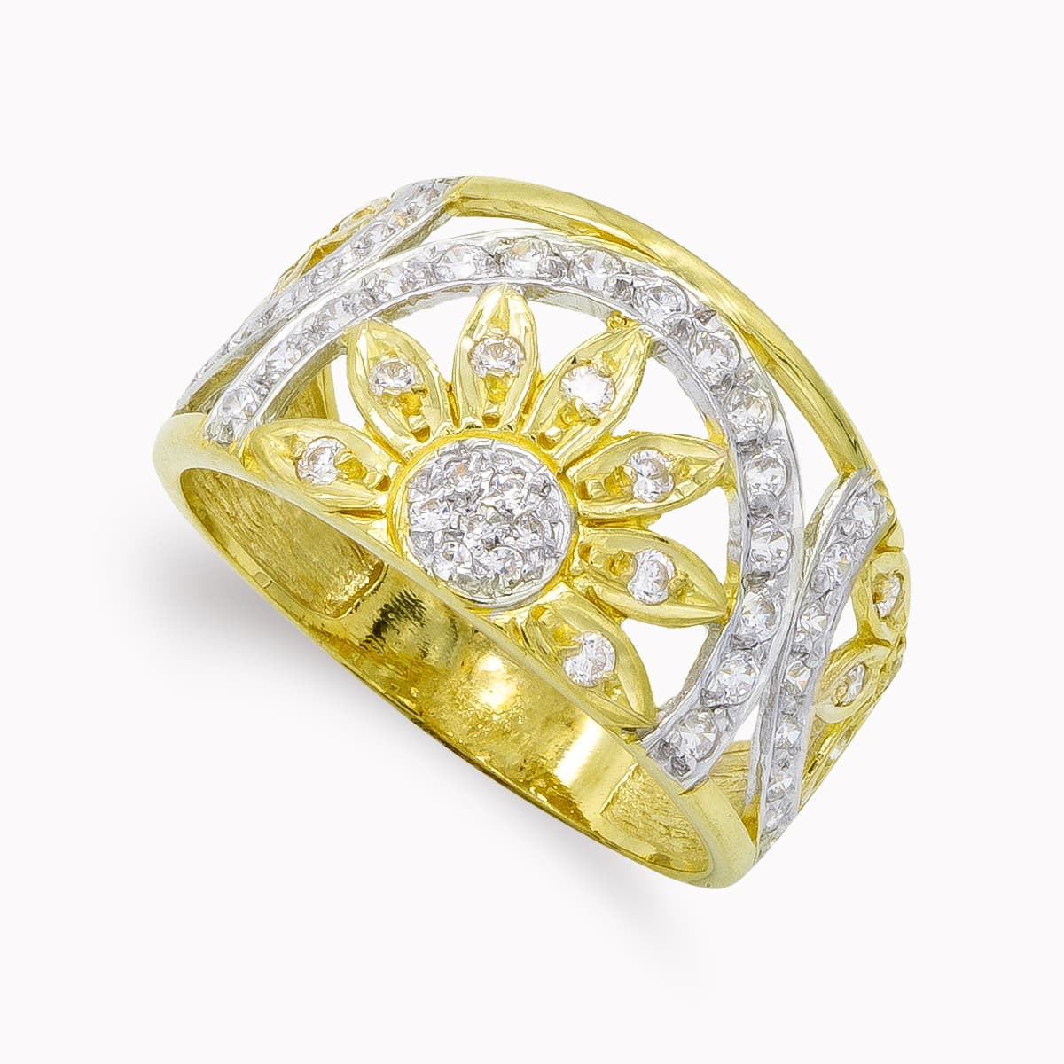 18K SORTIJA ORO BICOLOR SOLES CIRCONITAS
