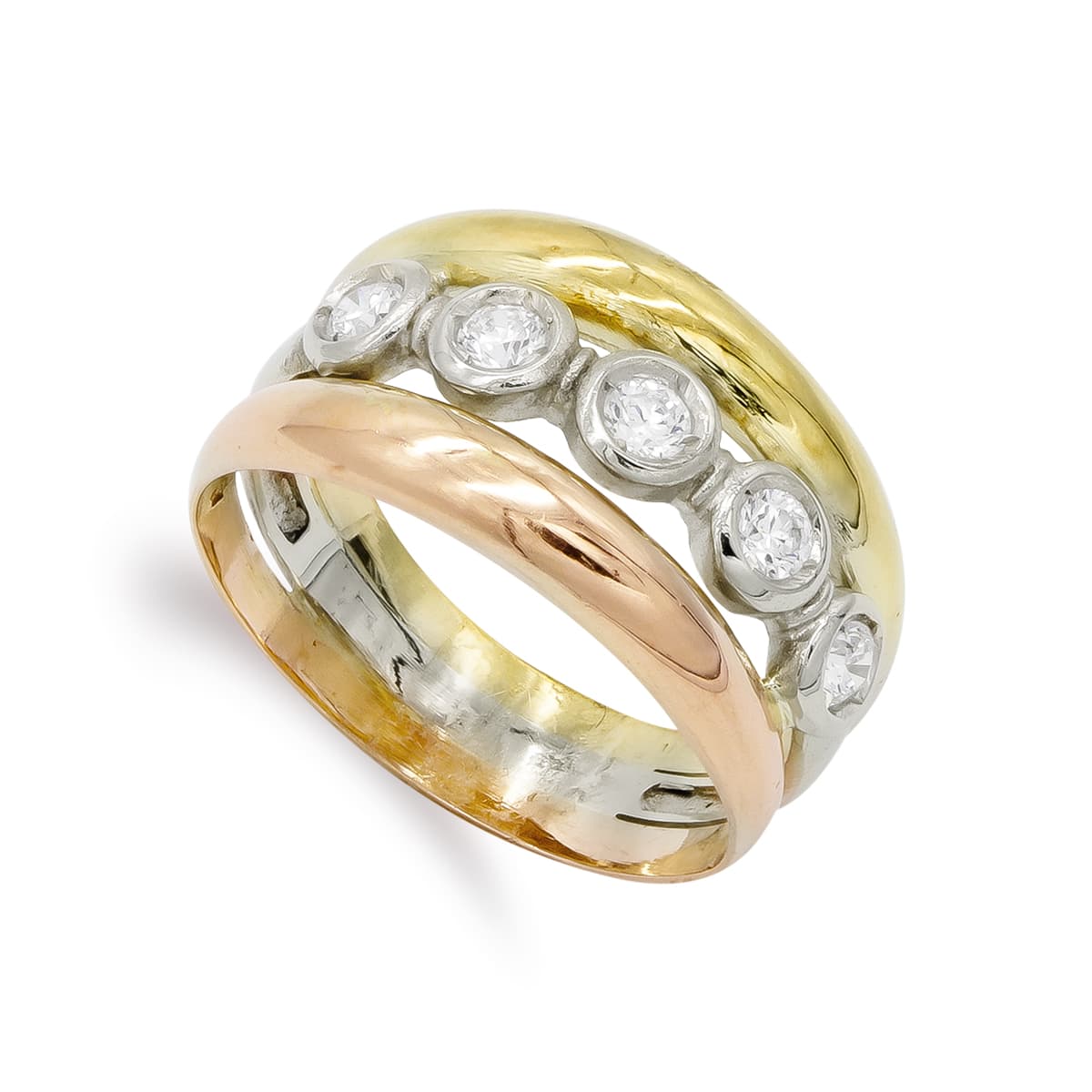 18K SORTIJA ORO TRICOLOR Y CIRCONITAS