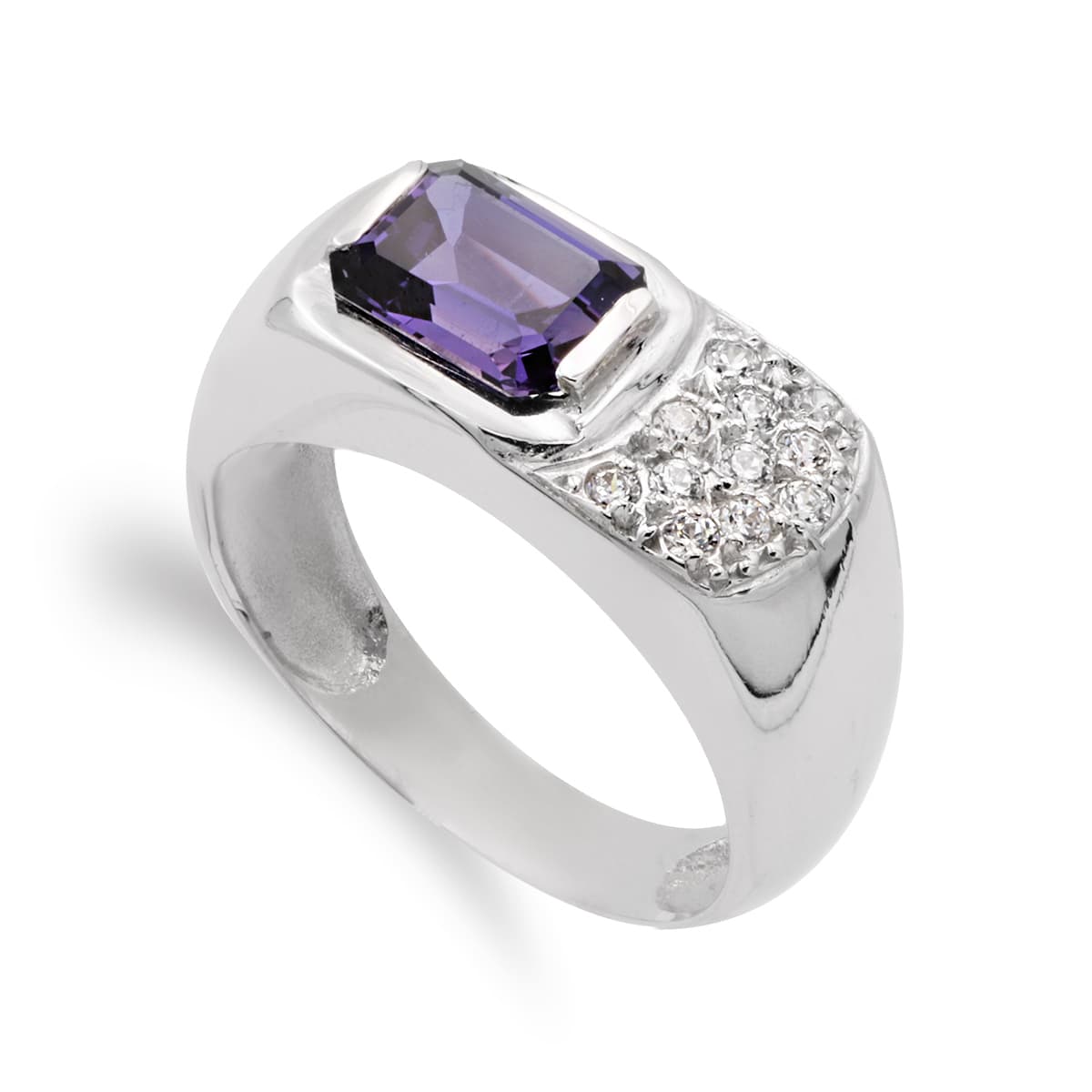 18K SORTIJA ORO BLANCO AMATISTA Y CIRCONITAS 8X6 MM