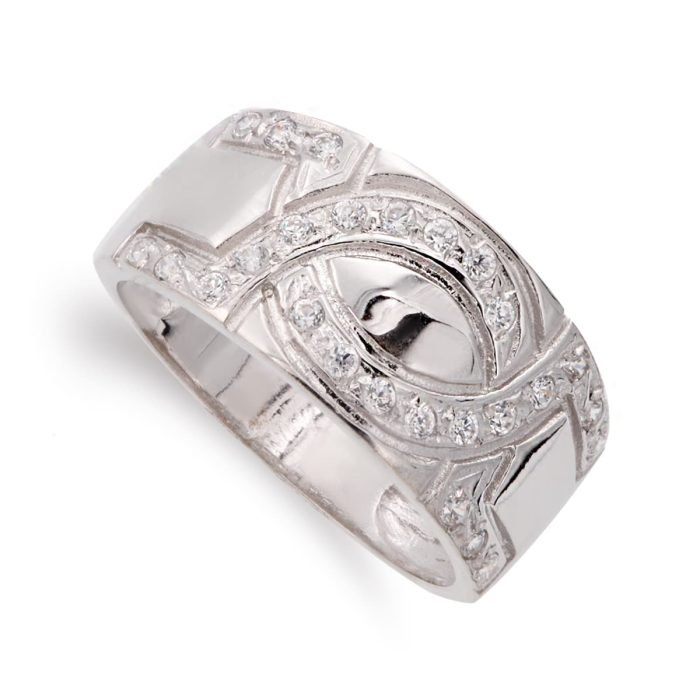 18K SORTIJA ORO BLANCO ANCHA CON CIRCONITAS 10 MM CUERPO 4 MM