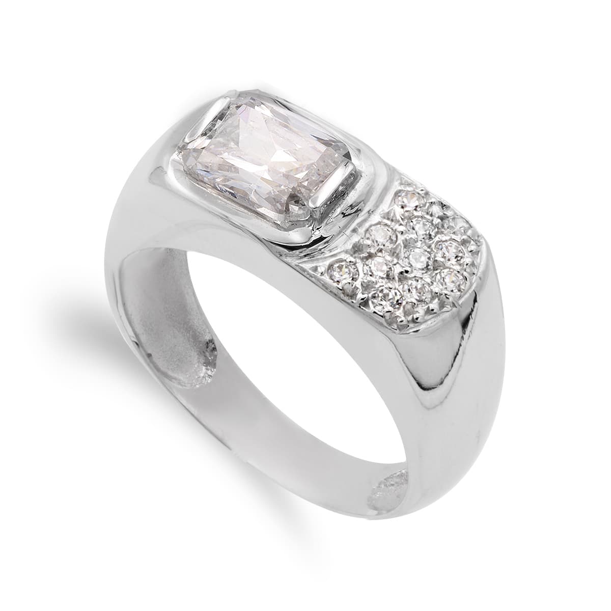 18K SORTIJA ORO BLANCO PIEDRA Y CIRCONITAS 8X6 MM