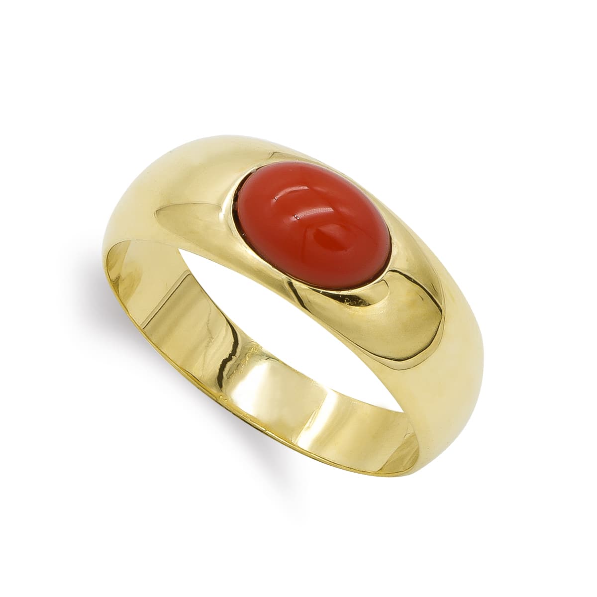 18K SORTIJA CORALINA OVAL 8X6 MM ANCHO 7 MM