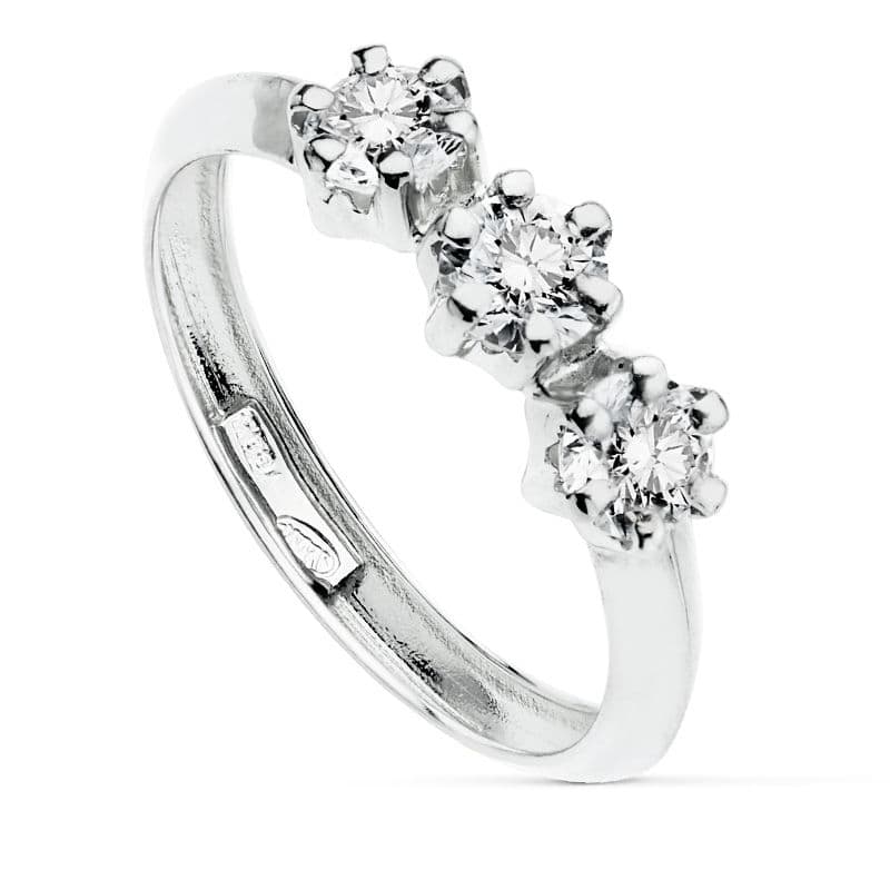 18K SORTIJA ORO BLANCO TRESILLO CIRCONITAS GARRA