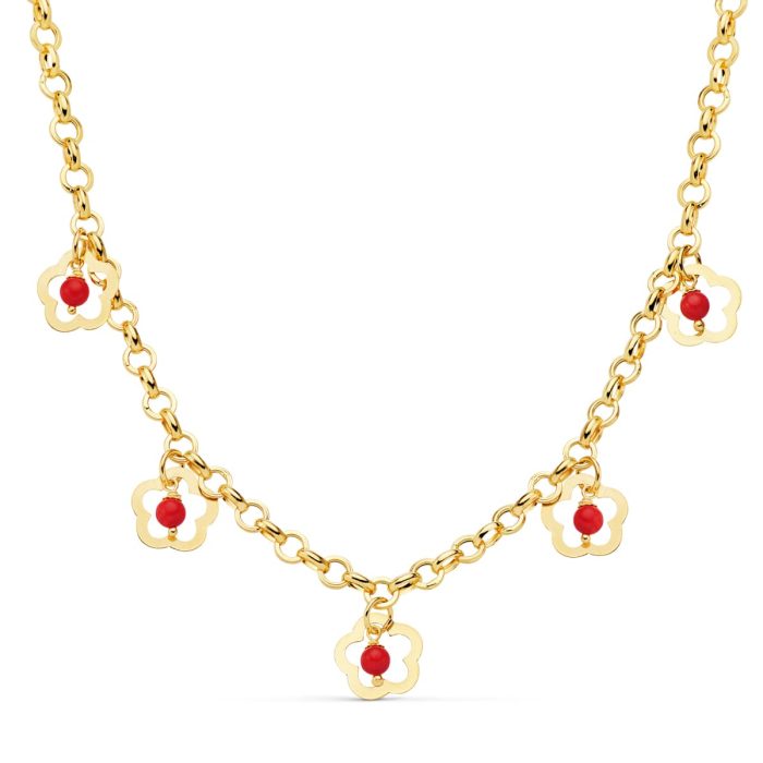 18K GARGANTILLA FLORES 12 MM CORAL CADENA 50 CM