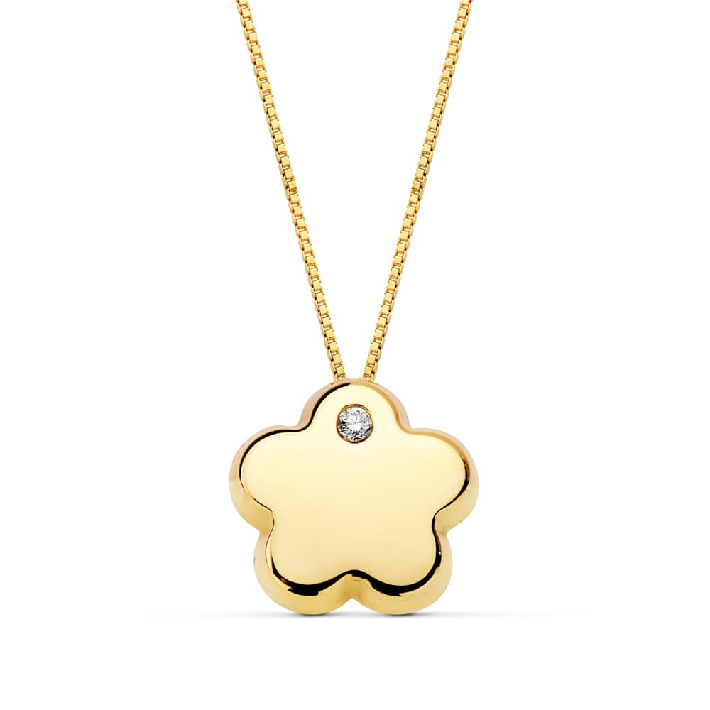 18K COLGANTE FLOR CIRCONITA CADENA 42CM