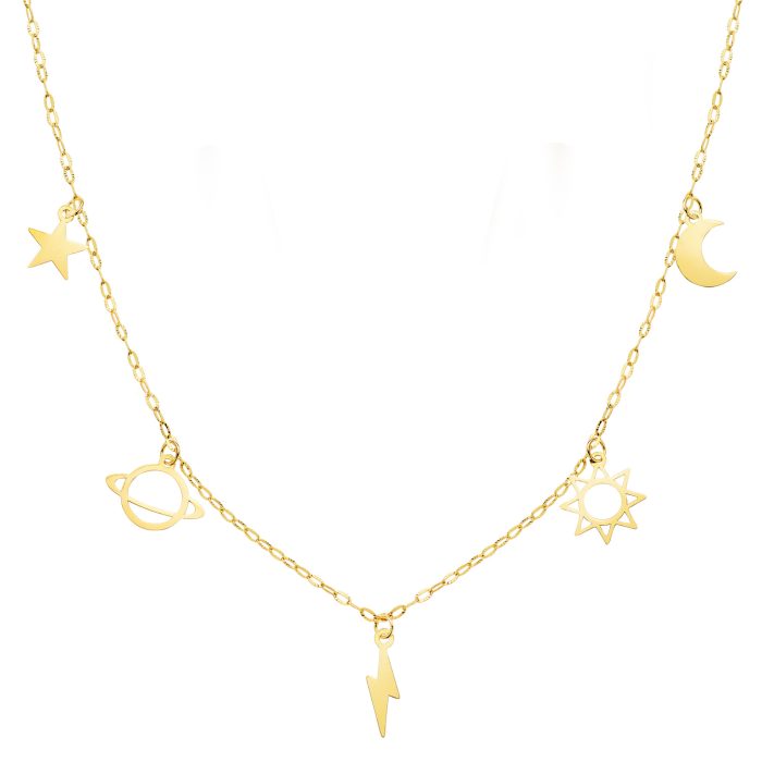 18K GARGANTILLA ORO AMARILLO CON COLGANTES UNIVERSO CADENA FORZADA TALLADA 42 3 CM