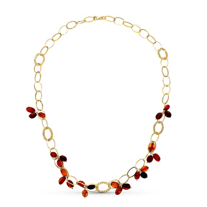 18K GARGANTILLA ORO AMARILLO ESLABONES PIEDRAS COLOR