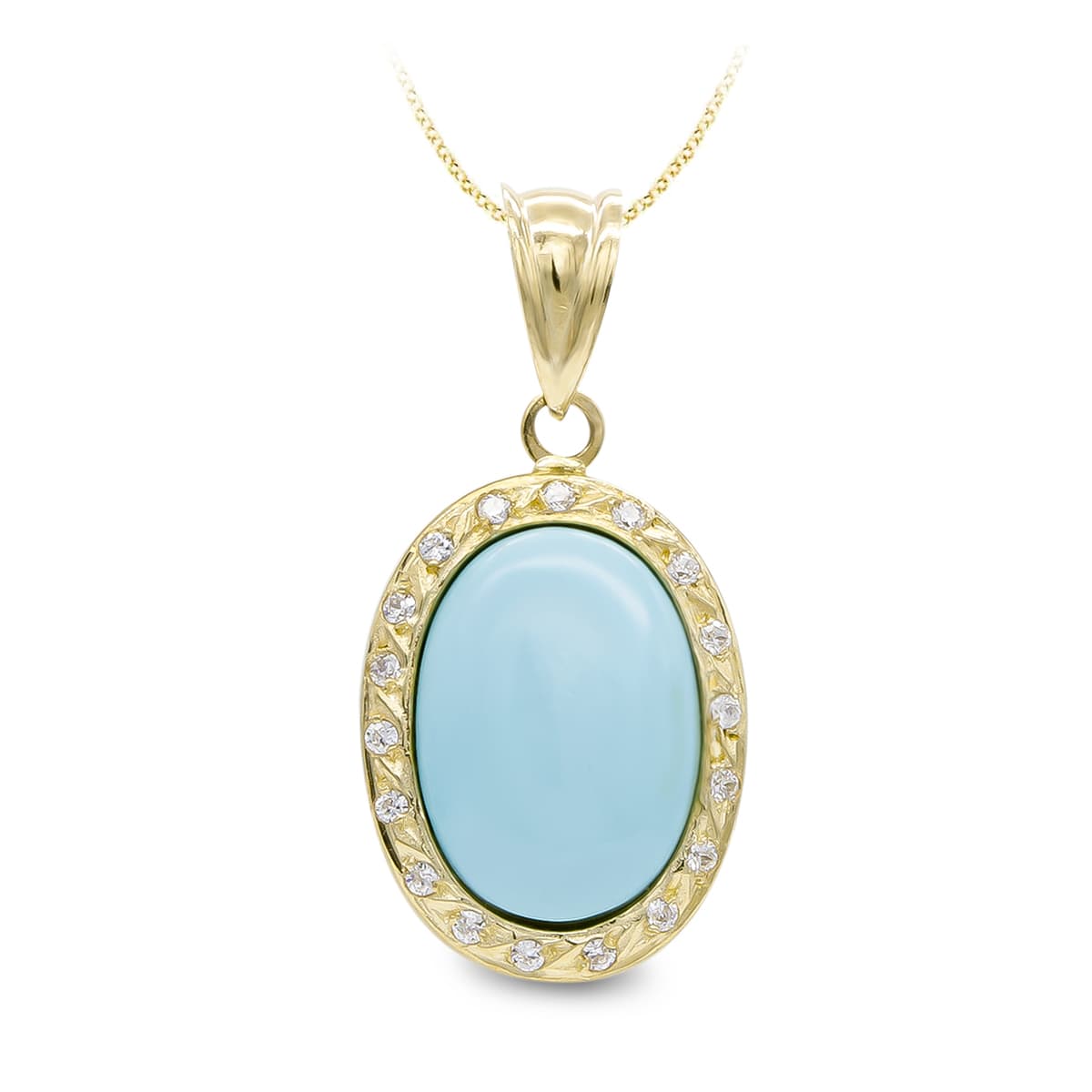 18K COLGANTE ORO AMARILLO TURQUESA FINA 14X10 MM CIRCONITAS