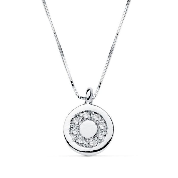 18K COLGANTE ORO BLANCO 8 MM CADENA 42 CM