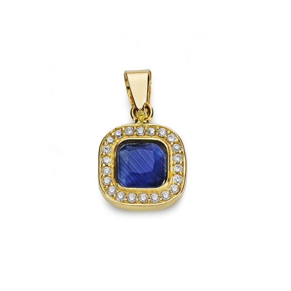 18K COLGANTE PIEDRA AZUL Y CIRCONITA 9X9 MM