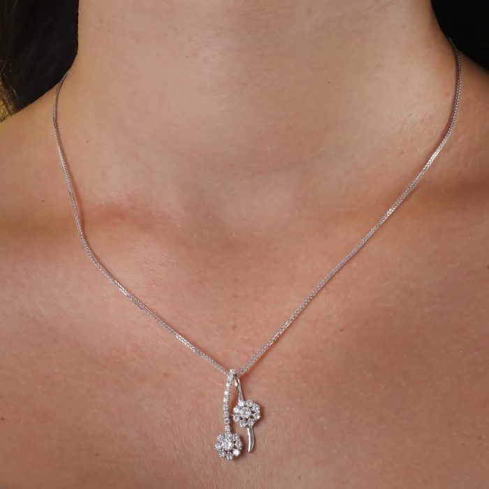 18K GARGANTILLA 45 CM ORO BLANCO JUEGO DE NOVIA CIRCONITAS MOTIVO 26X14 MM
