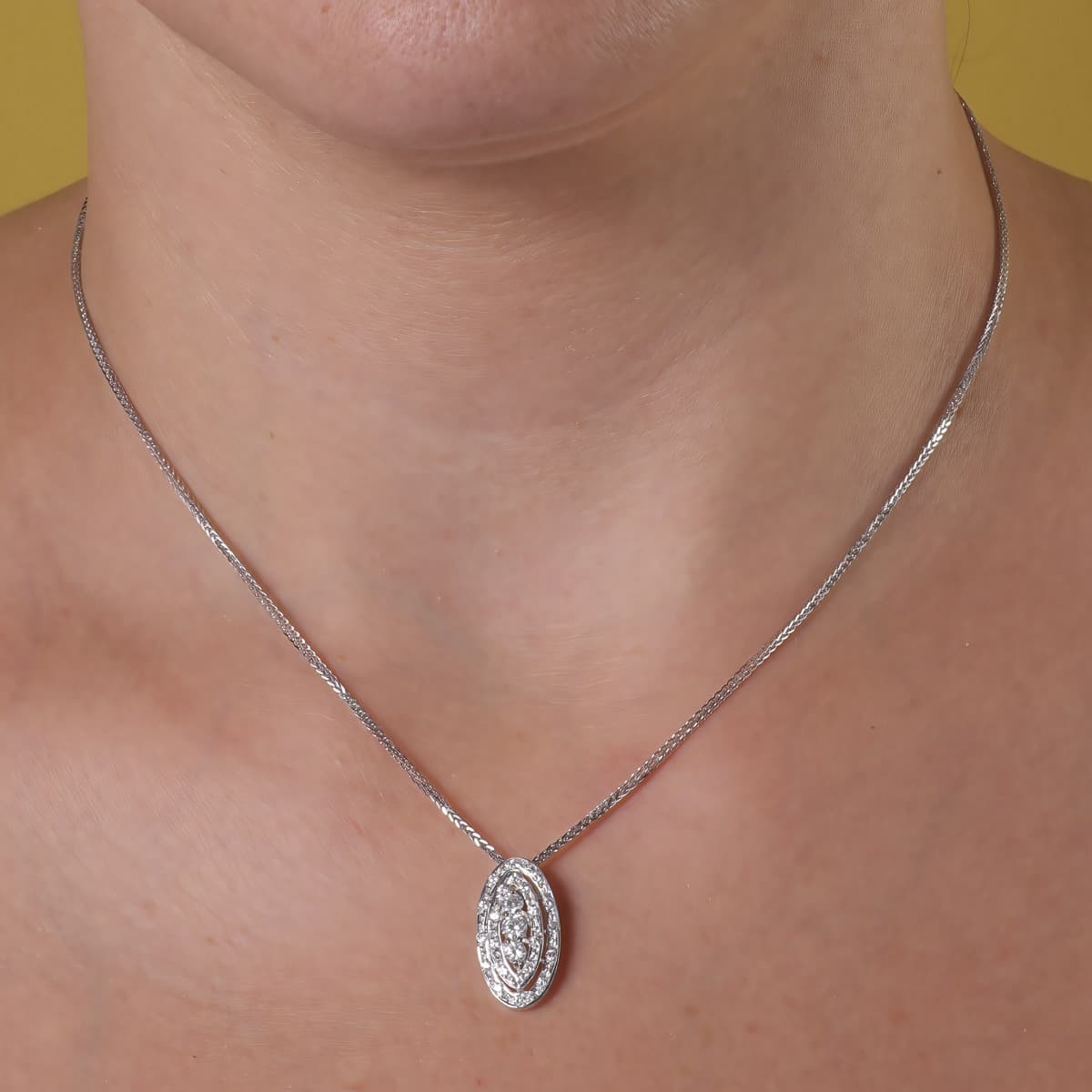 18K GARGANTILLA 45 CM ORO BLANCO JUEGO NOVIA CIRCONITAS MOTIVO OVAL 19X8 MM