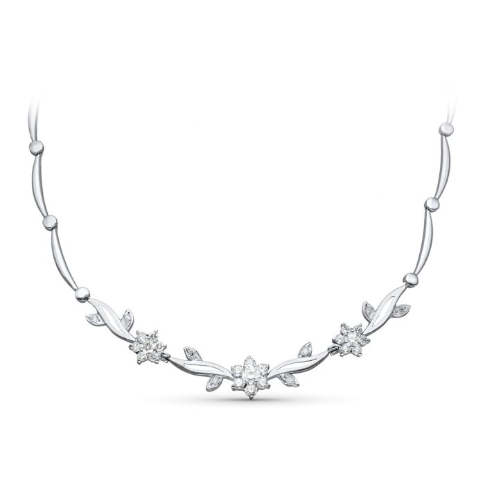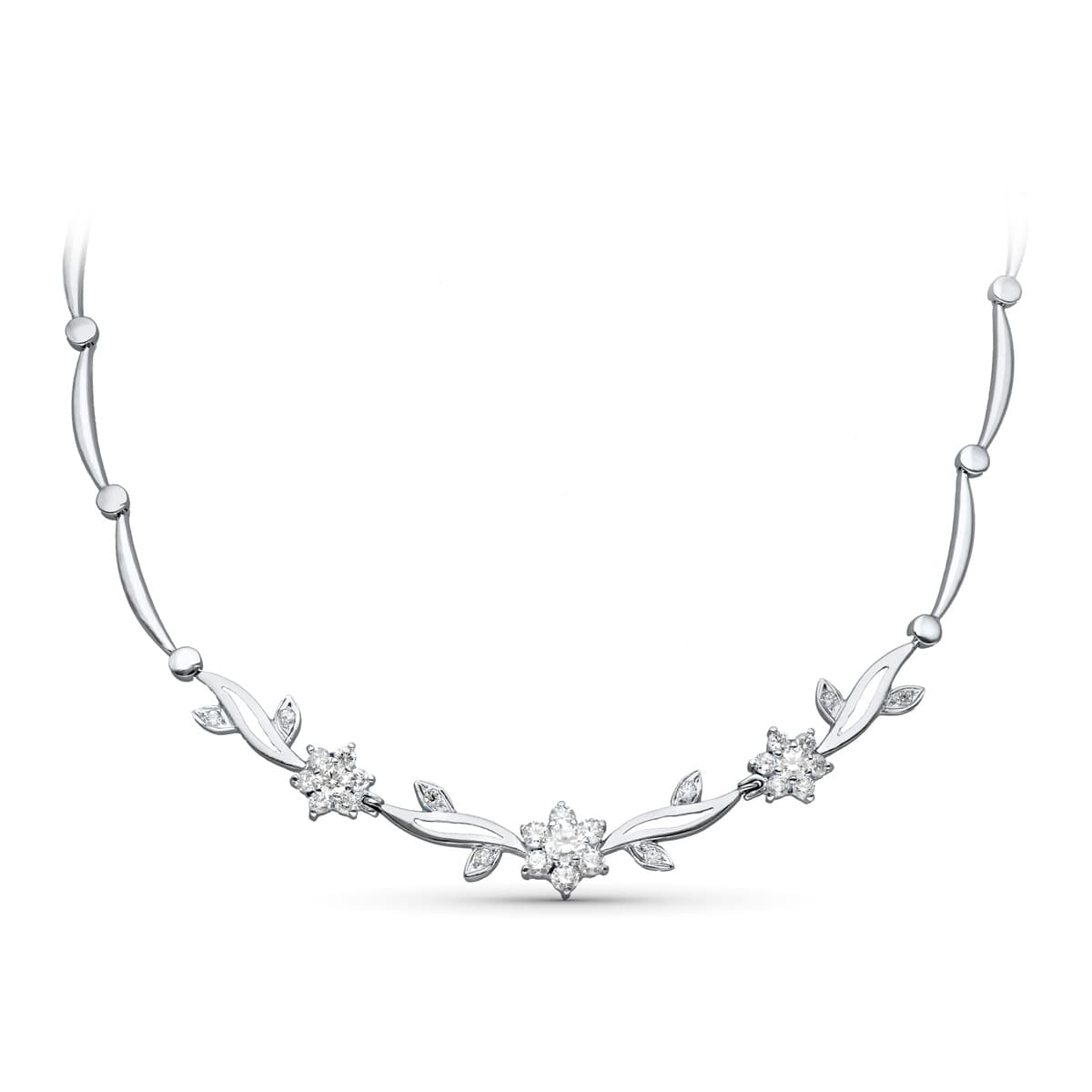 18K GARGANTILLA ORO BLANCO JUEGO NOVIA FLORES CIRCONITAS 45CM CIERRE MOSQUETON