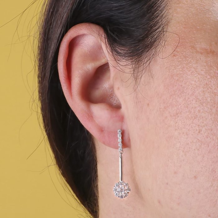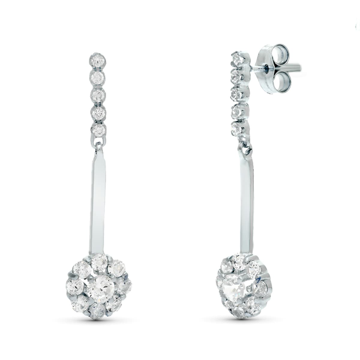 18K PENDIENTES DOS CUERPOS JUEGO DE NOVIAS CIRCONITAS 33X6 MM PRESION