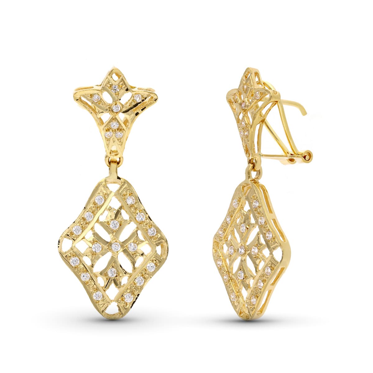18K PENDIENTES ORO AMARILLO DOS CUERPOS CON CIRCONITAS 40X17 MM CIERRE OMEGA