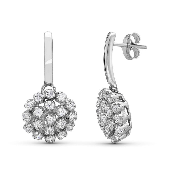 18K PENDIENTES ORO BLANCO CUAJO CIRCONITAS 30X10 MM CIERRE PRESION