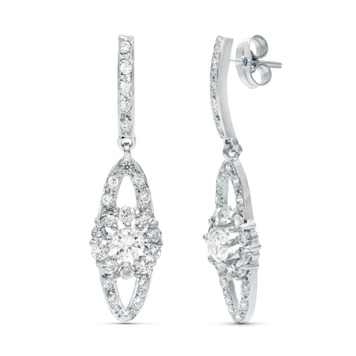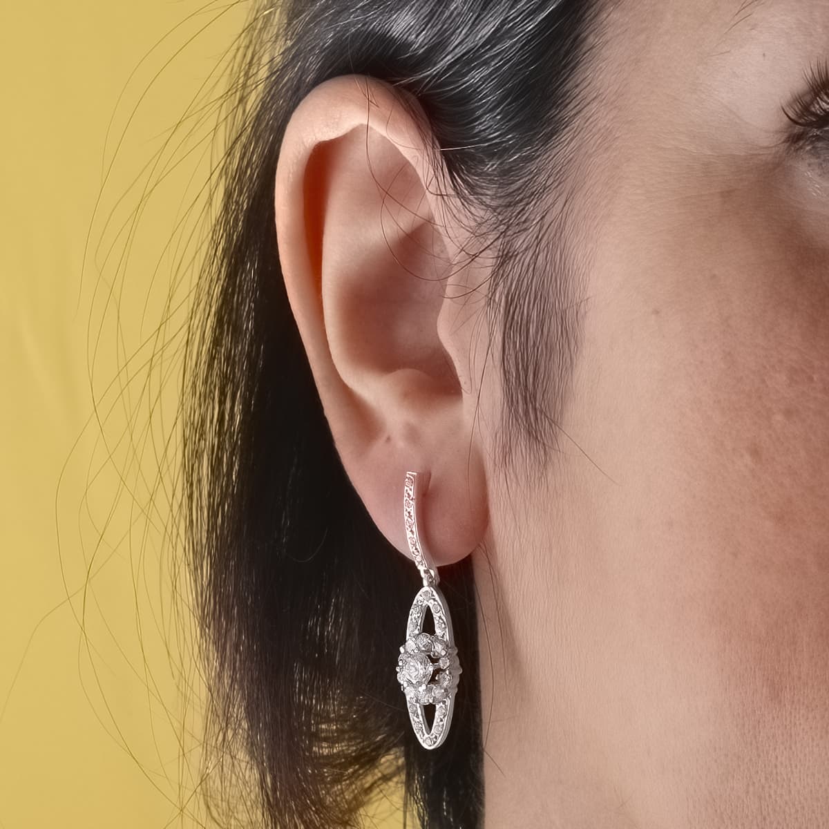 18K PENDIENTES ORO BLANCO JUEGO NOVIA CIRCONITAS 35X9 MM PRESION