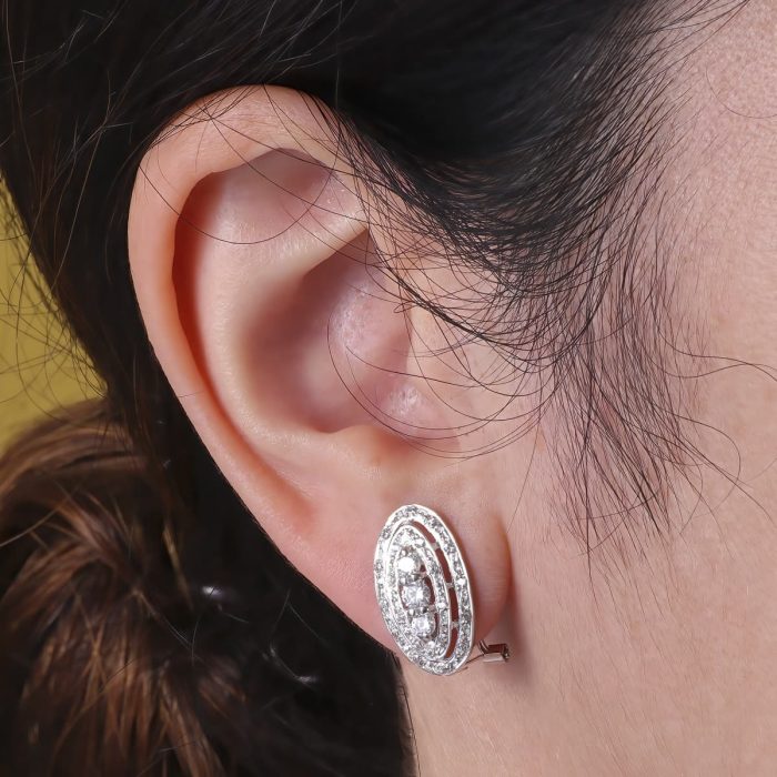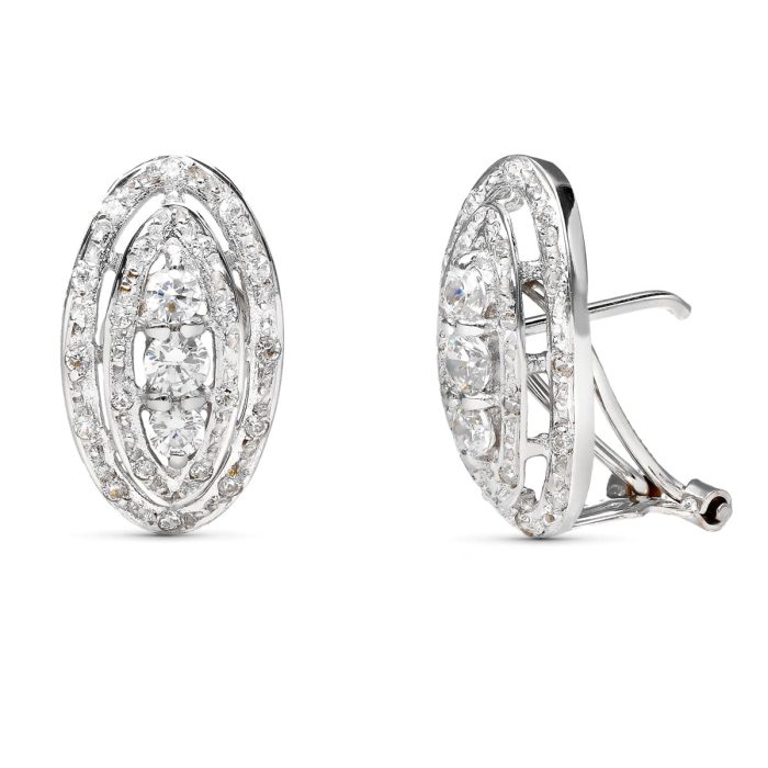 18K PENDIENTES ORO BLANCO JUEGO NOVIA CIRCONITAS CIERRE OMEGA 18X10 MM OMEGA