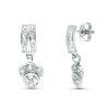 18K PENDIENTES ORO BLANCO JUEGO NOVIA DOS CUERPOS CIRCONITAS 20X9 MM PRESION